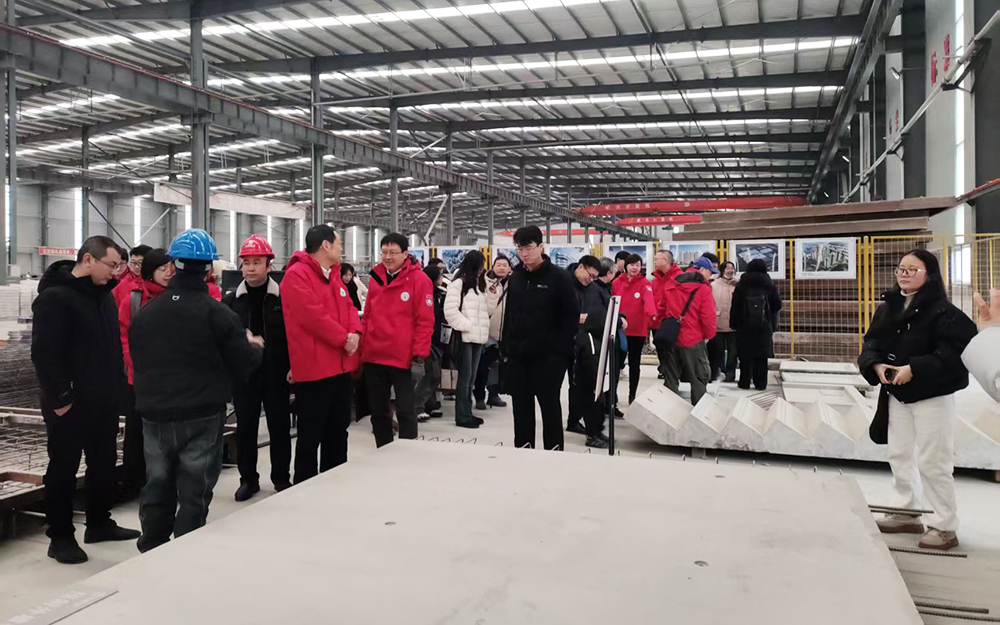 董发勤教带领参观团近90人,先后前往公司各厂房参观。在一期1号厂房,董教授一行实地察看装配式建筑预制构件的生产情况,现场了解我司现有生产工艺与产品品质。在新建的3号厂房,详细了解钢结构技术及产品在厂房的实际应用和效果,以及该厂房后续在装配式建筑和智能建造方向推进产业化布局的规划。